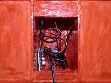 箱全体の色付け後、アンプモジュールを取り付けます。