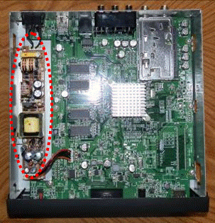 早速、ググってみると、電解コンデンサ2個の交換で電源が入るようになっているらしい。