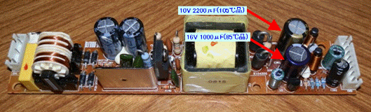 LT-H90DTVはOFF時も結構熱を持つので、85℃品の電解コンデンサ(16V 1000μF)がちょっと心配です。