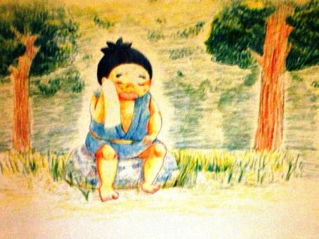 小さきころから体は大きいのに、弱虫ですくに泣いてしまう浪右衛門は、いつも近所の子供たちにいじめられていました。