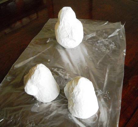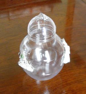 まん丸のコカ・コーラのペットボトルの上に、カプセルをのせ、新聞紙で凸凹を作って土台は完成です。