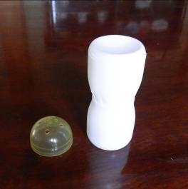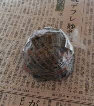 はがしやすいようにカプセルの上にビニールをかぶせ、水で薄めた木工用ボンドで新聞紙を貼っていきます。