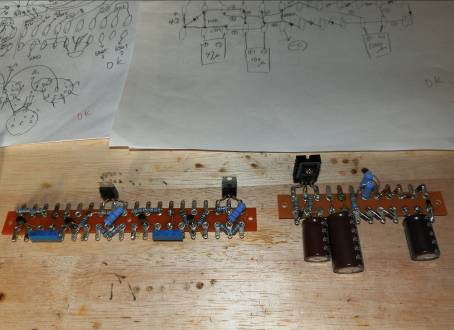 3連休だったので、とりあえず電源部分(右)とアンプ部分(左)のユニットを作りました。