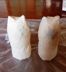 鼻の部分は、新聞紙を入れて少し膨らみをつけます。