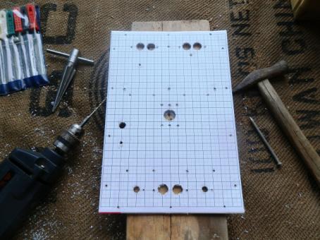 方眼紙を印刷したA4のシールを、アルミ板(300mm×200mm×1mm)に貼って、位置を書き込みます。