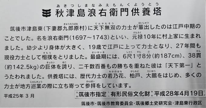 「秋津島浪右衛門」の供養塔(筑後市津島)です。