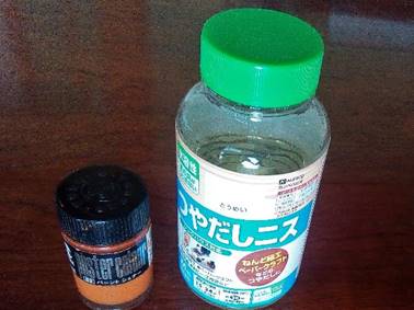 ポスターカラーで色付けして、ニスを塗って仕上げます。