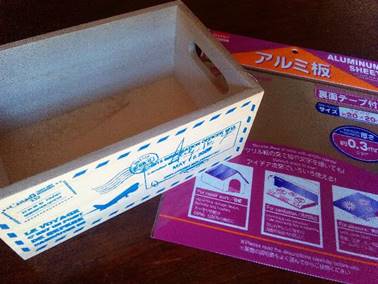 アルミ板の裏面にテープが付いていますので、簡単に木箱に貼れます。