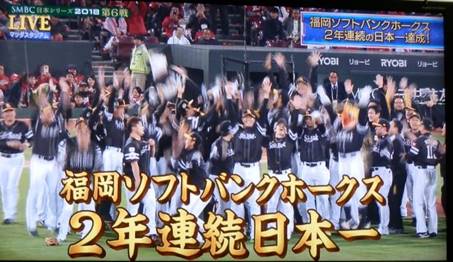 ホークスがカープを2対0で下して、2年連続の日本一になりました。