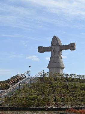 埴輪のような大巨人が立っています。