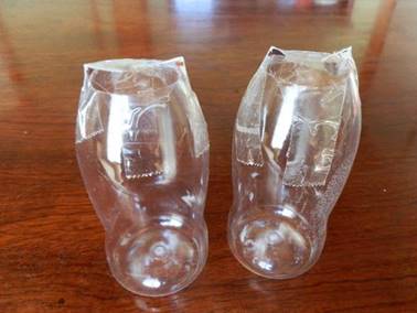 飲み口をカットして、その穴をリンゴのプラスチック容器でカバーしています。