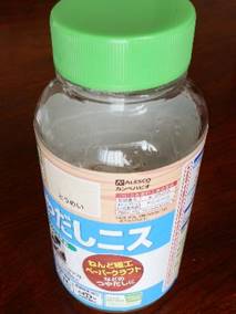 水性ですが、絵の具がにじまない艶出しニス(透明)です。