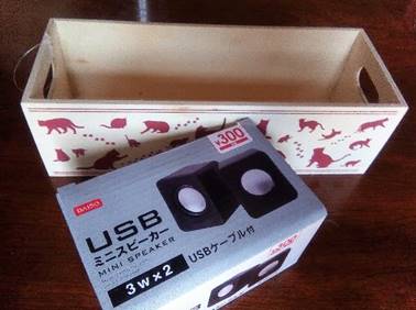 ダイソーのスピーカー(300円)と木箱(100円)です。