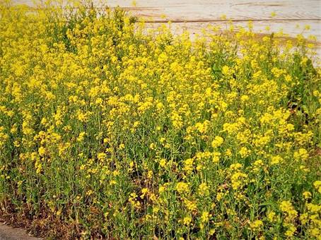 近くの空き地に菜の花が咲いていました。