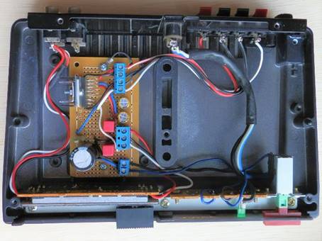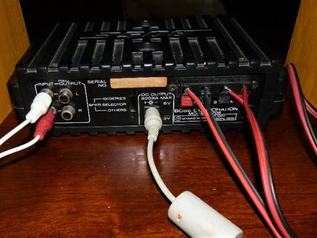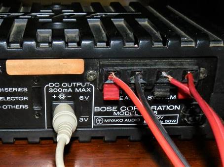 電源コード(交流100V)を切って、出力用のDC電源プラグ(3V・6V)からDC電源(12V)を取っています。