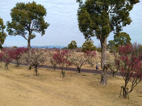 筑後広域公園では梅の花が満開に近くなっています。