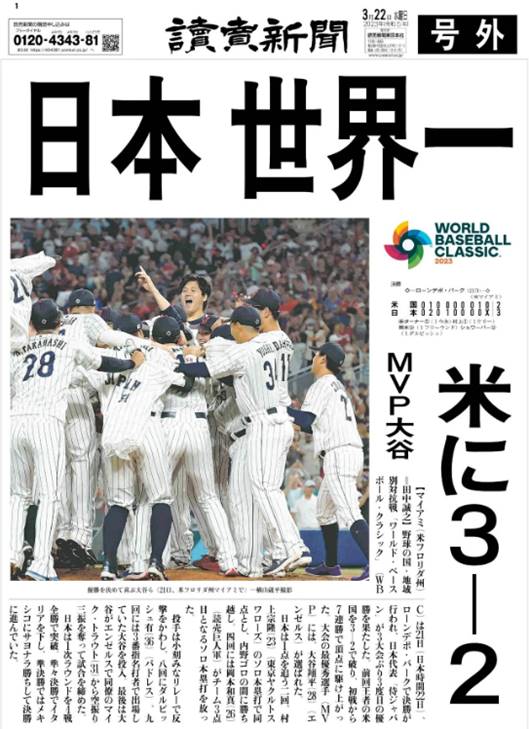 侍ジャパンがアメリカに3対2で勝って、世界一になりました。