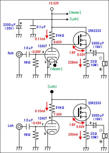 真空管(12AU7)とパワーMOSFET (2SK2233)の生の音が楽しめます。