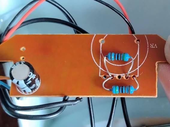 ボリュームを外した穴を利用して、抵抗器(5.1kΩ)を取り付けました。
