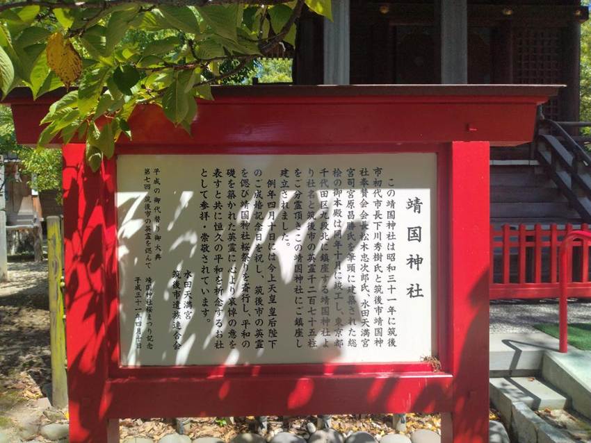 筑後市の靖国神社は水田天満宮の境内にあります。