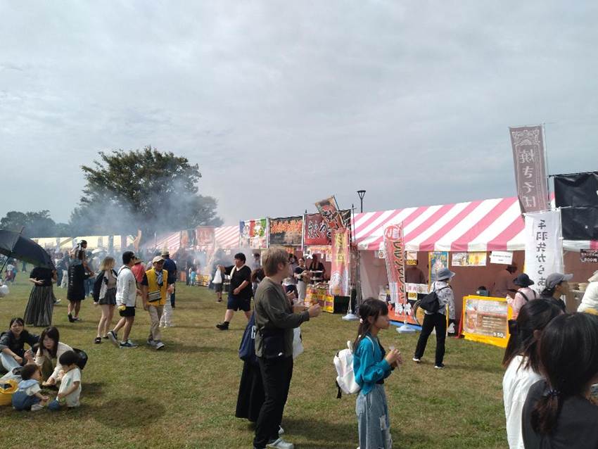 会場には地元の味を楽しめる露店がずらりと並び、香ばしい匂いが来場者の食欲を誘っていました。