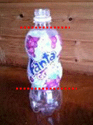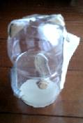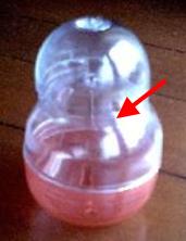 ガチャガチャのカプセル(大)の上にガチャガチャのカプセル(小)の半分をのせて、セロテープで固定します。 |