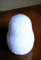 水で薄めた木工用ボンドで、和紙を重ねて貼っていきます。 最初は和紙が破れたり、しわになったりしますが、気にせず続けてください。 徐々に小さい和紙を貼って、しわを無くしていきます。 それでも、多少しわができますが、それもプラスチック玩具にはない張子の味わいと割り切ってください。 なお、 土台がありますので和紙は幾重にも貼る必要はありません。そのため、季節にもよりますが、1〜2日で乾燥します。 |