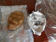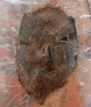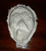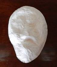 乾燥したお面を油粘土からはがします。 ※ポリ袋を油粘土の上にカバーしていたので、簡単にはぐことができます。 |